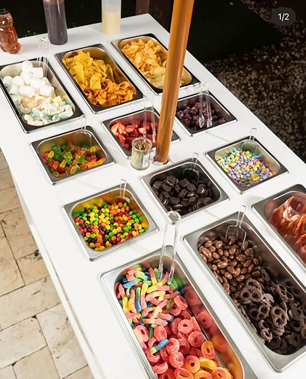 For a spectacular expirience we will provide a list to choose 12 products between Chocolate, gummies, nuts, hard candy and more